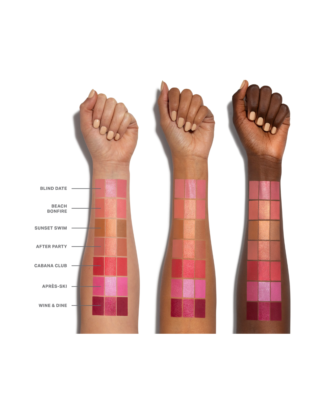 Trío facial multiacabado Cheek Thrills con crema satinada, bálsamo luminoso y polvo aterciopelado. Tres texturas en tonos monocromáticos que se combinan para crear looks personalizados con acabados versátiles.